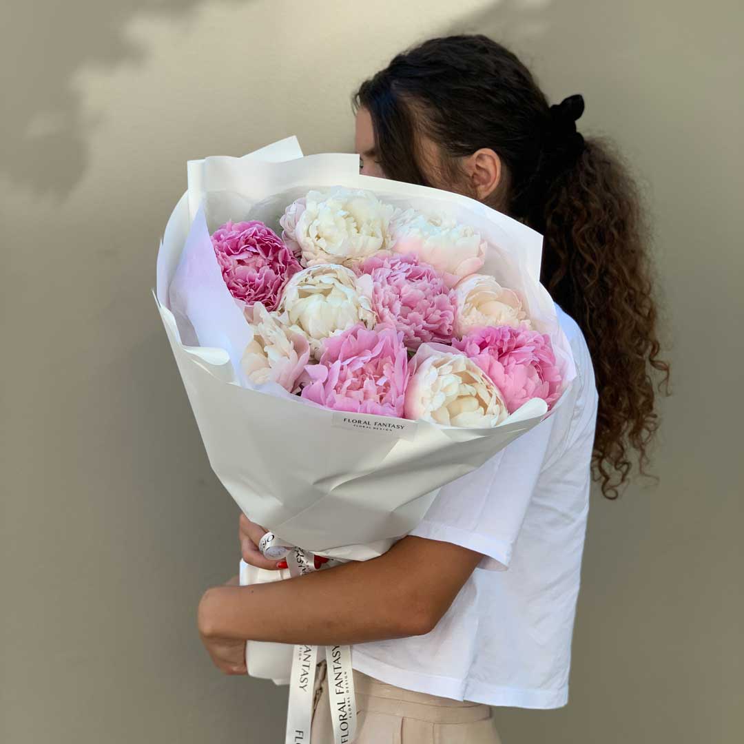 Embrace the soft beauty of spring with this exquisite bouquet of mixed pink and white peonies.