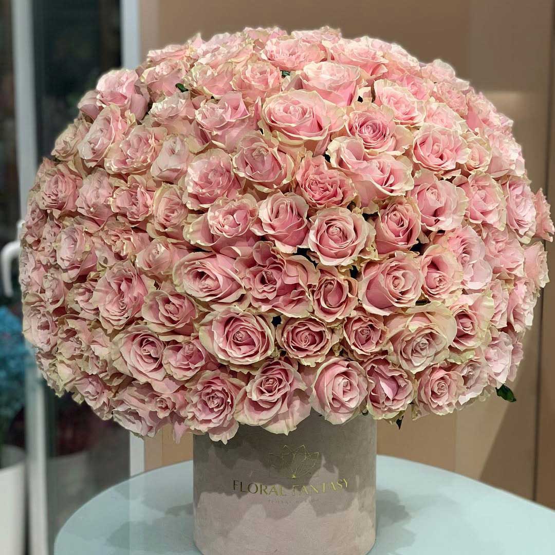 A box as sweet as this, filled with Rosa Pink Mondial roses.