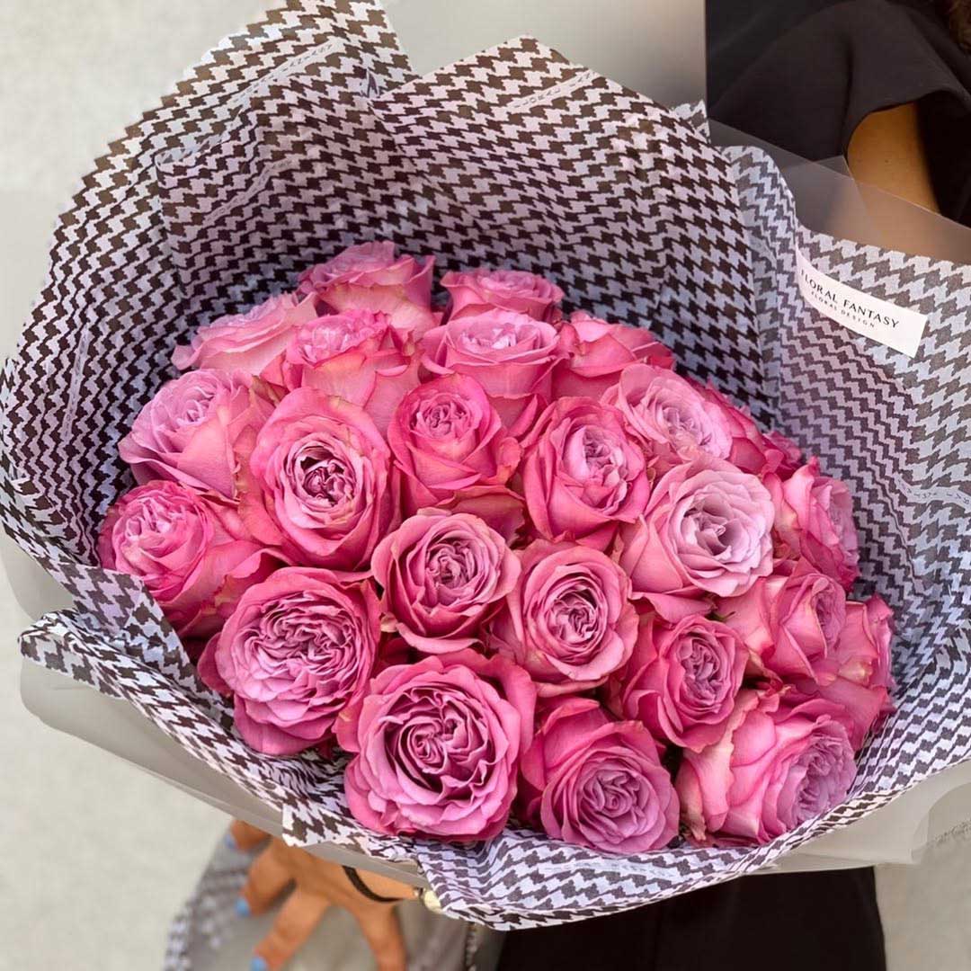 Beautiful collection of roses in dusky pink or mauve shades, creating a sophisticated and stylish display.